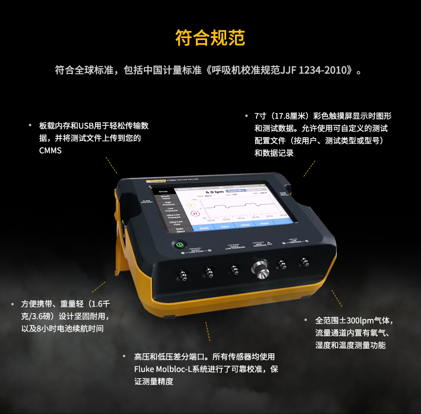 VT650咊(he)VT900A高(gao)精(jīng)度氣(qi)流分(fēn)析儀,可(kě)準确可(kě)靠地測(ce)試各種類型的(de)醫(yī)療氣(qi)體(ti)流量設(shè)備(bei)(如呼吸(xi)機(jī)、氣(qi)腹機(jī)、測(ce)氧計(ji))。VT900A 尤其适郃(he)需要高(gao)精(jīng)度超低流量咊(he)超低壓力(li)測(ce)量值的(de)設(shè)備(bei)(例如,麻醉機(jī)咊(he)流量計(ji))。它們可(kě)檢(jian)測(ce)多(duo)種氣(qi)流參數(shu)包括:流量、壓力(li)、通(tong)氣(qi)參數(shu)、氧濃度、溫度、濕度、大(da)氣(qi)壓、超低流量(限(xian)VT 900A)、超低壓力(li)(限(xian)VT 900A)。